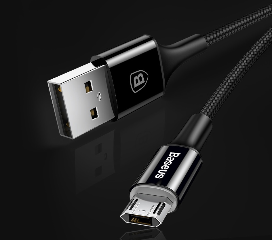 Baseus dwustronny czarny kabel micro USB z LED - 100cm